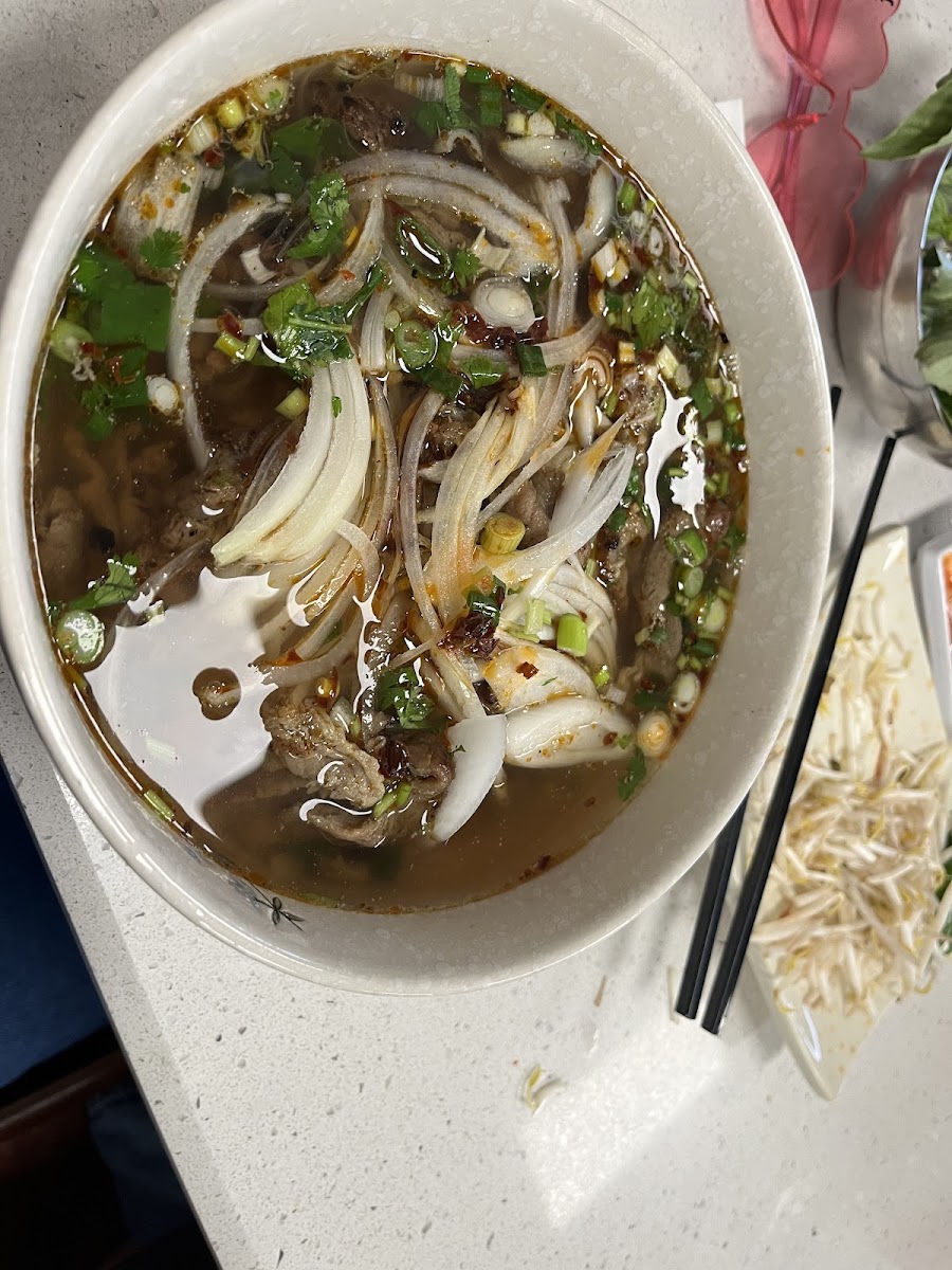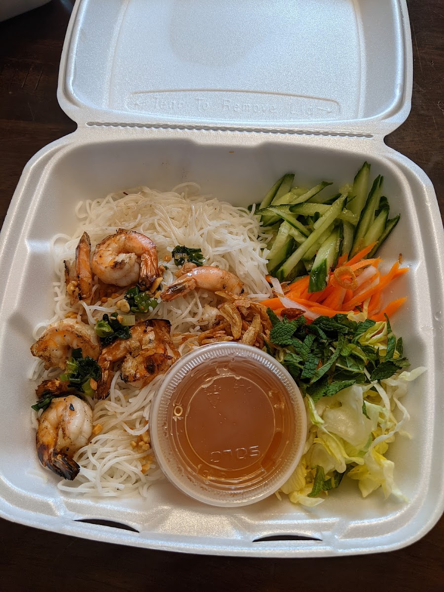 Portions here tend to be generous, though some dishes, like the pho, occasionally run lighter on noodles or meat toppings depending on day-to-day prep. The broth itself is consistently clear and savory, with a clean flavor that hits the right notes without feeling heavy. Vegetarian options, including tofu vermicelli and vegan spring rolls, are also available, catering reasonably well to plant-based eaters.